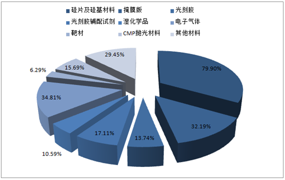 按照電子化學(xué)品在半導(dǎo)體工藝流程的應(yīng)用領(lǐng)域和要求,主要可分為硅片和硅基 材料、濕化學(xué)品、光刻膠及輔料、CMP拋光液、特種氣體、高純化學(xué)品等, 這些產(chǎn)品占半導(dǎo)體用電子化學(xué)品全部市場(chǎng)的80%以上。