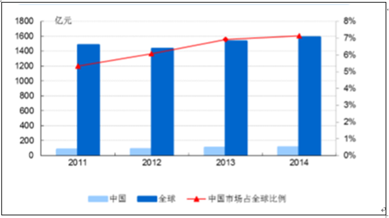 受益豐厚的政策紅利,加上我國(guó)生產(chǎn)成本較低,全球半導(dǎo)體產(chǎn)能向中國(guó)轉(zhuǎn)移 互聯(lián)網(wǎng)+、云計(jì)算、物聯(lián)網(wǎng)等電子信息產(chǎn)業(yè)也大力發(fā)展,國(guó)內(nèi)半導(dǎo)體產(chǎn)值快速 增長(zhǎng),2013年產(chǎn)值規(guī)模已達(dá)到約4千億元左右,2009-2013年的復(fù)合增長(zhǎng)達(dá)到 18.9%,遠(yuǎn)高于全球7.7%的復(fù)合增速,在全球的比例也不斷提高。