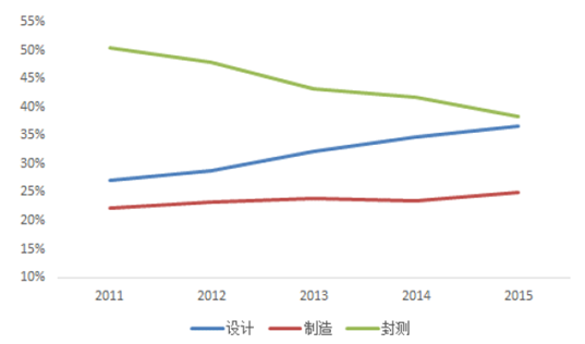 2011-2015年集成電路產(chǎn)業(yè)結(jié)構(gòu)變化趨勢