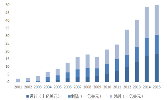 2001-2015年集成電路產(chǎn)業(yè)結(jié)構(gòu)