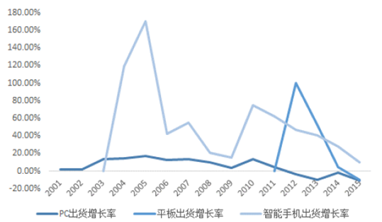 全球PC,平板及智能手機出貨增速