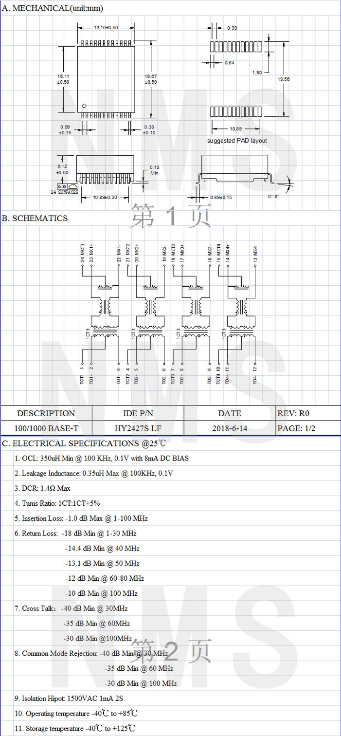 產(chǎn)品備注:SMD HY2427S LF產(chǎn)品系列